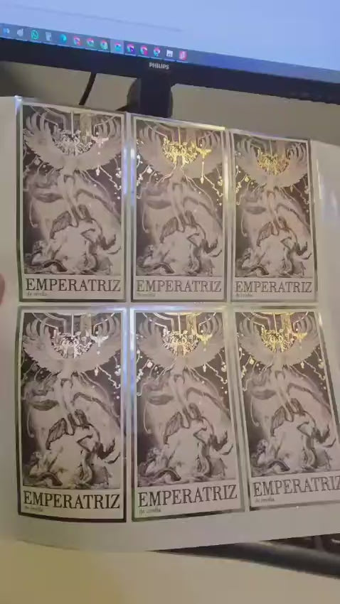 Papel metalizado con efecto stamping (áreas caladas sin impresión)